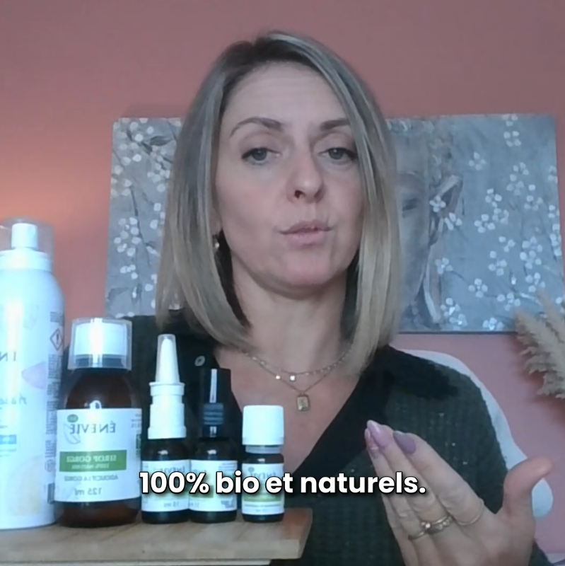 Les huiles essentielles soulagent la toux (sèche ou grasse), dégagent le nez en cas de rhume, sinusite ou rhinopharyngite, et aident à respirer librement lors d’angine, laryngite, otite ou allergies.